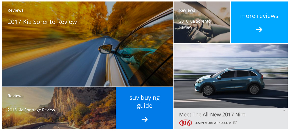 Modules to highlight and break up page content using photography, editorial components, video playlists, navigational units and capitalizing on the opportunity for ad revenue within them.